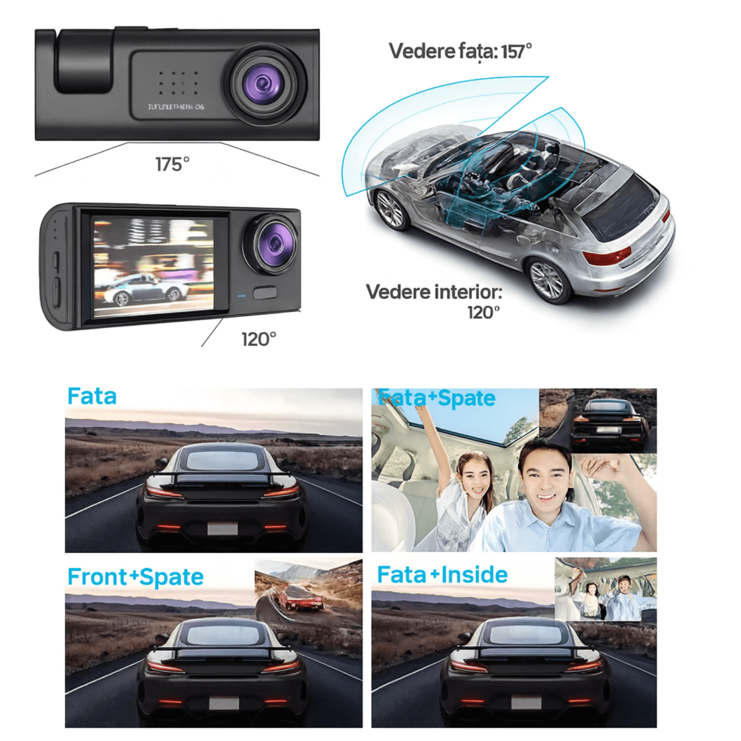 ✅ Filmări duale (față + spate) – acoperire completă a drumului